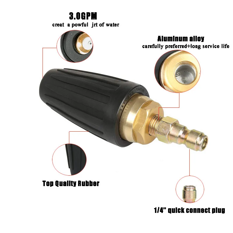 Turbo Nozzle 360° Rotating 3000 PSI 1/4'' Quick Connect with 5 Spray Nozzle 0 15 25 40 DegreesSoap
